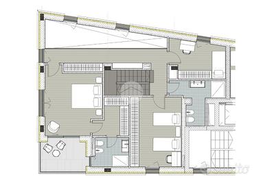 Salendo al sesto piano si accede alla zona notte, composta da due camere singole servite da un bagno spazioso. Completa il piano una grande camera matrimoniale con guardaroba interno, bagno privato con doccia e accesso a un terrazzino esclusivo a servizio della camera.