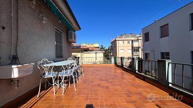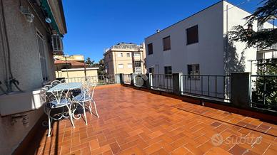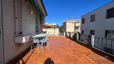 Il fiore all'occhiello di questo appartamento è sicuramente il grande terrazzo ideale per condividere momenti di convivialità e relax durante la stagione.