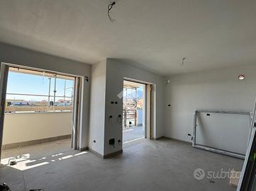 Attico al terzo ed ultimo piano piano disposto su due livelli. Dall'ingresso si accede al luminoso soggiorno con cucina abitabile a vista dotato di sfogo sull'ampio terrazzo angolare. Il disimpegno conduce alla camera da letto, con sfogo sul balcone, al bagno finestrato e al ripostiglio. Il vano scala è dotato di balcone e conduce al piano mansardato dove è possibile ricavare due camere da letto e bagno.