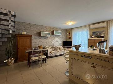 L'ingresso si apre su un'ampia e accogliente zona giorno con cucina abitabile a vista e zona living creando uno spazio ideale per momenti di convivialità e relax. Il disimpegno conduce alla camera matrimoniale e al bagno finestrato con doccia. Il piano è completato da balcone e terrazzo verandato, ideale per pranzi all'aperto e momenti di tranquillità.