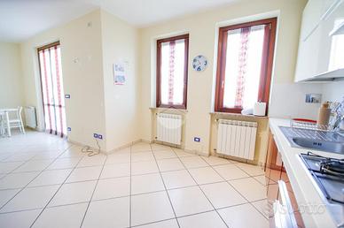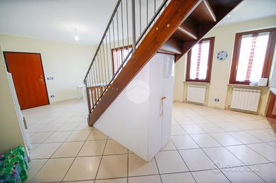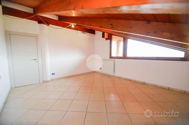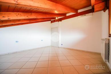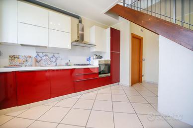 In elegante palazzina dotata di ascensore che giunge fino al piano interrato e, da ingressi pedonale e carraio automatizzati, appartamento bilivello. Il portoncino blindato si apre sull'ampio soggiorno con cucina a vista, dal quale si scorge la scala in legno che conduce al piano superiore. Il disimpegno ospita un comodo ripostiglio. Il piano abitativo si completa di una camera matrimoniale di generosa metratura e di un bagno dotato di vasca. Il piano mansardato accoglie due camere da letto, caratterizzate da vetrate e tetto in legno lamellare, ed un bagno munito di doccia. La soluzione presenta pavimentazione uniforme ed impianto di sterefonia in tutti gli ambienti. A pertinenza dell'unità immobiliare una cantina e la possibilità di acquistare a parte un box auto doppio di circa 40 mq.