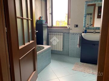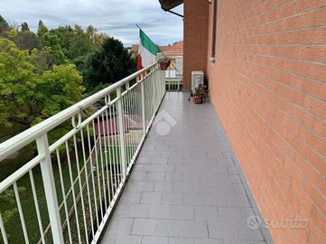 Zona Centrale. A pochi metri dal corso Francia, dal Comune di Rivoli e da tutti i servizi di prima necessità, in palazzina caratterizzata da poche unità immobiliari, signorile, di recente costruzione e dalle rifiniture in paramano, alloggio quadrilocale all'ultimo piano diposto su due livelli abitativi. L'ingresso da direttamente sulla sala, ampia e ben sfruttabile, con annesso il primo balcone dotato di tenda estate/inverno; la cucina abitabile è doppia, ben esposta e deriva dalla fusione di due vani distinti ed anche questa ha il proprio balcone panoramico annesso; la camera da letto al piano è matrimoniale, ben esposta, con adiacente balcone con vista parco, il bagno è squadrato e ben sfruttabile. Completa la proprietà dell'immobile il sottotetto rifinito, non abitabile, di circa 70 mq collegato direttamente da scala interna. E' presente la cantina al piano interrato. Possibilità box auto sottostante. Riscaldamento autonomo con contabilizzazione dei consumi. Ottima opportunità per chi cerca tranquillità e confort abitativo, senza al contempo rinunciare alla comodità dei servizi cittadini.