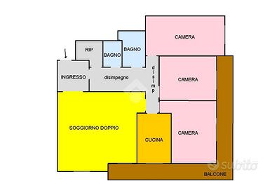 * Servizi: Doppi servizi, completi di un pratico ripostiglio con finestra, facilmente trasformabile in un terzo bagno o lavanderia all'occorrenza.