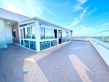 Gli spazi esterni includono tre terrazzi di cui due al piano inferiore e un'ampia terrazza al piano superiore, di circa 100 mq, dotata di una veranda panoramica ideale per vivere momenti di relax.