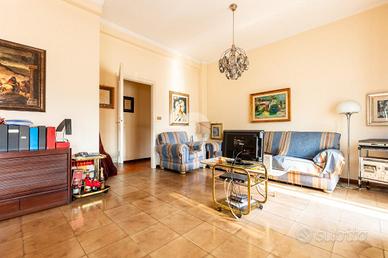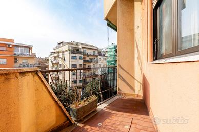 Baldo degli Ubaldi in stabile con servizio di portineria proponiamo la vendita di un piano alto con ottima esposizione a Sud. Ampia metratura, circa 130 mq interni l'immobile è composto da un ampio ingresso di 10 mq separato dal salone doppio di 30 mq da una tramezzatura che, eliminata creerebbe una zona living a vista ancora piu ampia. Cucina abitabile, 3 camere matrimoniali, 2 bagni, cameretta di servizio e 4 balconi. L'immobile ha di proprietà un ampio magazzino/cantina di 15 mq posto al piano terra con finestra. Inoltre a livello condominiale legati all'immobile ci sono altra cantina molto ampia assegnata e un posto auto doppio accessibile direttamente con l'ascensore.