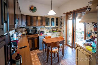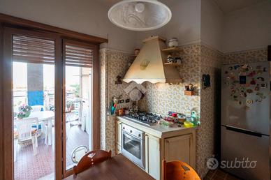 Frontalmente rispetto all'ingresso si trova la cucina abitabile con uscita sul terrazzo. Proseguendo, la zona notte ospita tre camere da letto, tutte con accesso al balcone. Completano la proprietà un bagno principale finestrato, un ripostiglio finestrato e un secondo bagno di servizio.