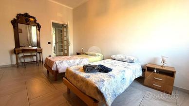Sul lato sinistro dell'ingresso si sviluppa il doppio salone con angolo cottura, anch'esso molto luminoso grazie alla presenza di due finestre. Nella zona giorno troviamo un bagno finestrato con doccia e un comodo ripostiglio. Procedendo verso la zona notte tramite un corridoio, troviamo 3 camere matrimoniali di cui 1 con terrazzino. Due delle camere affacciano su via La Spezia e una affaccia sul lato opposto. L'immobile si completa con un bagno finestrato con vasca e ampio ripostiglio.