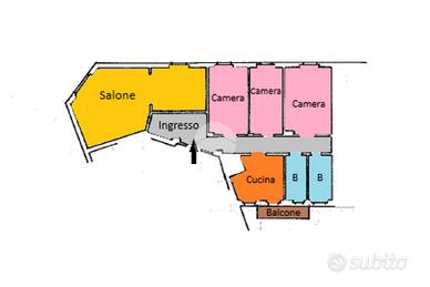 Internamente l'immobile è composto da: ampio ingresso, salone doppio, tre camere da letto, cucina abitabile, doppi servizi e balcone.