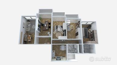 Laurentino, Via Melville, in stabile in tinta, disponiamo di un ampio cinque locali di 134 mq al sesto piano con ascensore, composto da sala, quattro camere matrimoniali, cucina abitabile con balcone di servizio , due bagni finestrati entrambi ristrutturati, tre balconi.