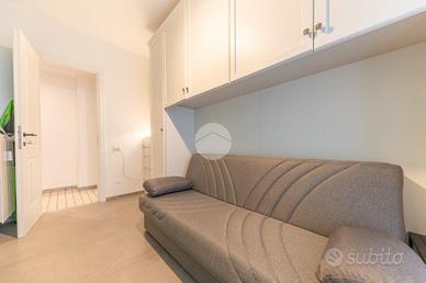 L'intero appartamento gode di una straordinaria tripla esposizione (Sud, Est e Ovest), che garantisce una luminosità naturale costante e regala una vista panoramica aperta e suggestiva direttamente sul parco adiacente. La qualità abitativa è elevata da dotazioni tecniche di alto livello: gli infissi in alluminio con doppio vetro e doppio taglio termico, completi di tapparelle motorizzate, assicurano un isolamento perfetto e massima praticità.