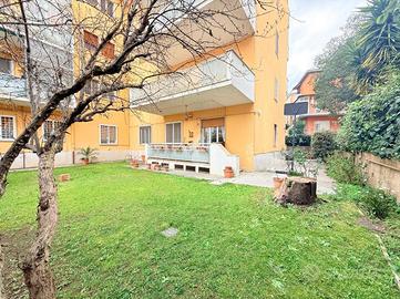 Ampia metratura, giardino perimetrale e triplice esposizione - una casa da vivere e valorizzare Di fronte al Policlinico Universitario Agostino Gemelli, in Via della Pineta Sacchetti, proponiamo in vendita un appartamento di ampia metratura con giardino perimetrale esclusivo di circa 200 mq, completamente interno e riservato, accessibile da più punti dell'abitazione. L'immobile è situato al piano terra rialzato di uno stabile signorile recentemente ristrutturato esternamente e dotato di ascensore. Gli infissi sono in alluminio con doppio vetro, a garanzia di un buon isolamento e comfort abitativo. Gli spazi interni sono generosi e ben distribuiti. L'ingresso introduce a una zona giorno ampia e luminosa, con soggiorno doppio che gode di un affaccio diretto sull'esterno. La cucina è abitabile e separata, mentre la zona notte è composta da tre camere matrimoniali, una camera di servizio e due bagni. La triplice esposizione, unita alla metratura importante, offre la possibilità di ottimizzare la distribuzione degli ambienti e valorizzare ulteriormente gli spazi, adattandoli alle esigenze di una famiglia moderna o a soluzioni abitative evolute. La presenza di tre balconi rende la casa particolarmente ariosa e luminosa: uno è accessibile sia dal soggiorno sia da una camera, un secondo serve un'altra camera sul lato opposto, mentre il terzo è collegato alla cucina. Tutti i balconi sono dotati di gradini che conducono direttamente al giardino, creando una continuità naturale tra interno ed esterno e permettendo di vivere il verde da ogni lato della casa. Completano la proprietà una cantina di circa 10 mq e un box auto di circa 15 mq, elemento di assoluto valore in una zona così richiesta. La posizione è strategica e ottimamente servita, a pochi passi da università, ospedali (Gemelli, Cristo Re), mezzi pubblici e tutti i principali servizi. Una soluzione rara per chi cerca grandi spazi, riservatezza e un giardino vivibile, con il vantaggio di poter valorizzare al mass