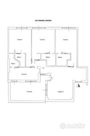 Posto al primo piano di un elegante palazzo in cortina degli anni '60, con ascensore e servizio di portineria, l'immobile è composto da ingresso, zona living con angolo cottura, quattro camere con bagno ad uso esclusivo e terrazzo di circa 17 mq.