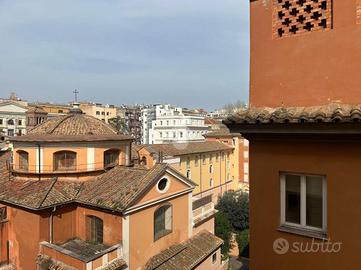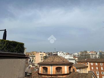 L'appartamento, si distingue per l'ampia metratura, la distribuzione regolare degli ambienti e il triplo affaccio aperto che regala scorci suggestivi sul centro storico e sui caratteristici tetti di Roma.