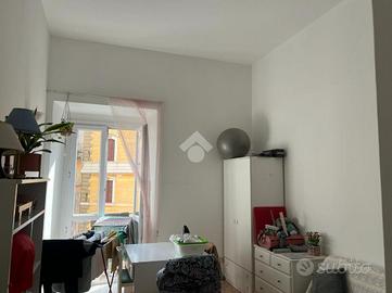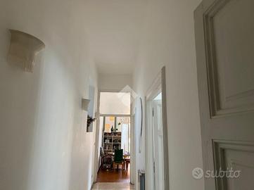 L'ingresso introduce in un ambiente accogliente e funzionale dove, sulla destra, è presente un comodo armadio a muro perfettamente integrato, ideale come spazio di contenimento. Dal corridoio si accede alla zona principale dell'immobile, è composta da quattro ampie camere con affaccio diretto su Via Cavour, che garantiscono luminosità e una vista aperta su una delle vie più iconiche e storiche della capitale. Lo studio, più raccolto e silenzioso, affaccia su Via Ruinaglia, offrendo uno spazio ideale per lavoro o relax. Alla sinistra dell'ingresso, si incontra un ulteriore armadio a muro, utile come ripostiglio o dispensa, che conduce alla cucina. Dalla cucina si gode di un affaccio particolarmente suggestivo sui tetti del centro storico di Roma, uno scorcio tipico e molto ricercato che restituisce tutto il fascino della città eterna. Il bagno è di generose dimensioni ed è dotato di finestra.