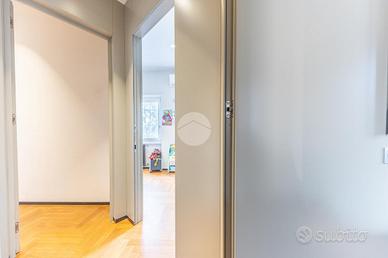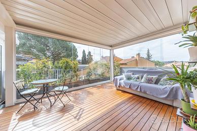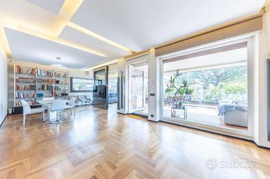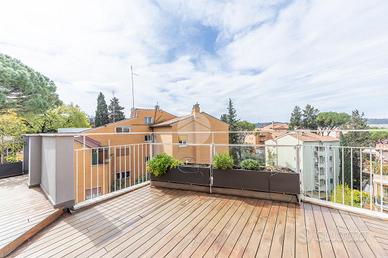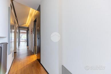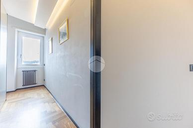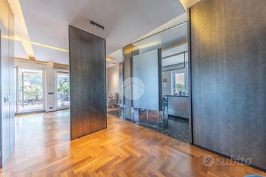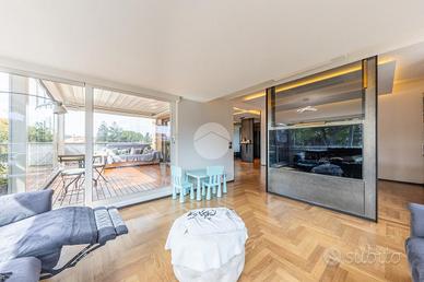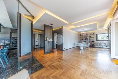 FLEMING - ATTICO RISTRUTTURATO CON MATERIALI DI PREGIO Nel cuore di una delle zone più esclusive della Capitale, il quartiere Fleming, siamo lieti di presentarvi una raffinato attico unico al piano, precisamente in Via Bartolomeo Gosio, all'inizio di Via Alessandro Fleming. La proprietà, unica nel suo genere, è stata completamente ristrutturata e si distingue per l'ampiezza degli spazi, la luminosità dovuta alla quadrupla esposizione e la perfetta distribuzione interna, offrendo un equilibrio ideale tra eleganza e funzionalità. Zona giorno, composta da un ampio ingresso che conduce al salone triplo, estremamente luminoso e perfetto per accogliere e vivere momenti di convivialità, con accesso diretto agli spazi esterni. La cucina è abitabile, comoda e ben organizzata per la vita quotidiana. La zona notte si compone di quattro camere da letto, tra cui una padronale con bagno en suite e cabina armadio, una camera, una cameretta anch'essa dotata di cabina armadio e una seconda camera padronale con bagno privato, separata dalle altre, ideale per essere adibita a zona ospiti o studio, oltre a una cameretta di servizio e quattro bagni complessivi, di cui due en suite. L'immobile è arricchito dalla presenza di due splendidi terrazzi, uno dotato di pergotenda, ideale per vivere appieno gli spazi esterni in ogni stagione, e l'altro completamente aperto, perfetto per momenti di relax all'aria aperta. È inoltre presente un balcone, una comoda zona lavanderia, numerose armadiature a muro lungo i corridoi e due soppalchi, pensati per garantire praticità e ordine. Completano la proprietà una cantina e un posto auto nella rimessa condominiale, tradizionalmente utilizzato e riconosciuto in via consuetudinaria dai condomini. Perché scegliere questo immobile: * Per l'esclusività dell'ultimo piano e gli ampi spazi interni. * Per la recente ristrutturazione e l'elevato livello di comfort abitativo. * Per la presenza di terrazzi vivibili e spazi esterni riservati.Per maggiori