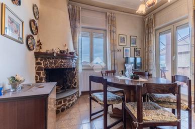 Internamente l'appartamento si compone di: salone con uscita sul terrazzo, cucina abitabile, bagno con vasca e una zona notte caratterizzata da camera matrimoniale, una cameretta con balcone ed uno studio con camino.