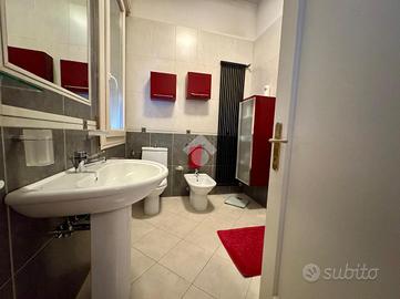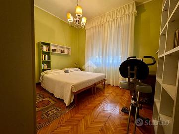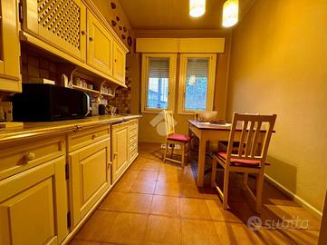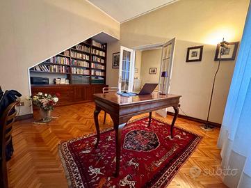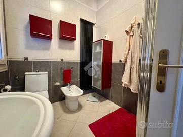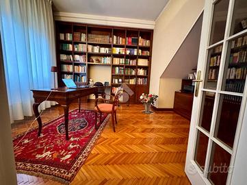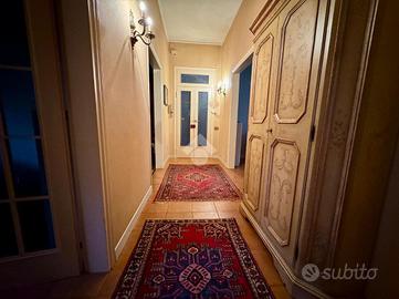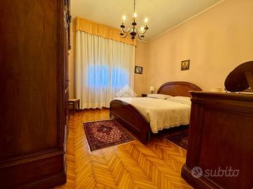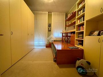 L'immobile, con una superficie di 209 metri, è composto su due livelli; al piano primo troviamo un ampio e luminoso soggiorno con una stanza attualmente adibito a studio, sala da pranzo di ampie metrature, cucina abitabile e bagno finestrato con doccia. Al secondo piano torviamo quattro camere da letto di cui tre matrimoniali ed una doppia ed il secondo bagno finestrato. A concludere l'immobile due ampie cantine di proprietà ed il garage.