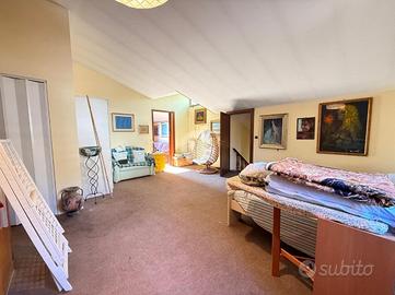 AMPIO ALLOGGIO CON GIARDINO E GARAGE - MONTECOMPOSTO,RUBIANA. In borgata Montecomposto, nel comune di Rubiana, si propone in vendita un ampio appartamento situato al primo ed ultimo piano. L'immobile offre una disposizione spaziosa e funzionale con cinque locali ben distribuiti, ed è così composto: ingresso su disimpegno, soggiorno con camino, cucina, bagno, camera e due balconi. Tramite la scala interna si accede al piano sottotetto abitabile composto da due camere. L'immobile si presenta in buone condizioni, ed è abitabile fin da subito. Completano la proprietà un piccolo appezzamento di giardino privato ed il garage doppio. Riscaldamento autonomo a metano. La posizione strategica permette di godere della bellezza naturale circostante, offrendo un rifugio ideale per chi desidera vivere in armonia con l'ambiente.