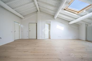 Travi Bianche e Soffitto a Mansarda: L'altezza dei soffitti e le travi completamente sbiancate, oltre alla presenza di diversi velux, amplificano la luminosità e l'ampiezza degli ambienti, creando un'atmosfera unica e accogliente.