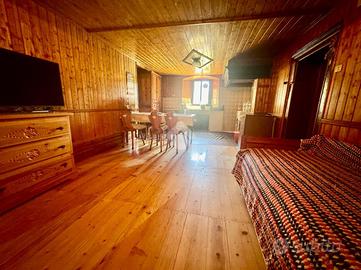L'immobile, di circa 150 mq, offre un abitabile soggiorno con angolo cottura, due camere da letto, un bagno e un balcone con vista panoramica sulle piste.