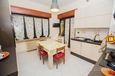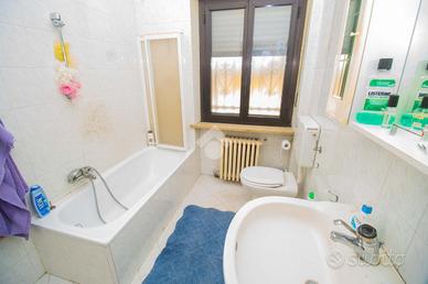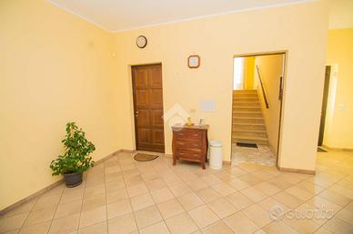 A Salassa, al piano rialzato di soluzione indipendente composta da sole tre unità immobiliari, ampio appartamento termoautonomo con giardino privato. Da un ampio ingresso condominiale si accede all'alloggio, che si presenta con il corridoio, che ben organizza gli ambienti, ampi e luminosi: il soggiorno gode di una finestra a quattro battenti; la cucina è abitabile, ben organizzata e, oltre alla grande finestra, ha una portafinestra per accedere al balcone verandato, adibito a lavanderia, dal quale è anche possibile uscire nel cortile condominiale. La zona notte si compone di 3 camere da letto, tutte di buona dimensione, a pianta regolare e con pavimentazione in parquet, le cui finestre, che donano luce naturale ed ariosità alle camere, si affacciano sul giardino privato recintato. A servizio dell'abitazione c'è un servizio igienico con vasca da bagno e finestra. A perfezionamento della proposta immobiliare si trovano la cantina, il box auto triplo e il giardino privato recintato di circa 50 mq. L'appartamento si presenta in buono stato interno: le porte interne sono in legno e vetro satinato, i parquet delle camere da letto sono di ottima qualità ed gli infissi in alluminio con doppio vetro sono protetti da grate. Il riscaldamento è autonomo, mediante caldaia a condensazione, sostituita nel 2021, installata nella veranda e non ci sono spese condominiali.