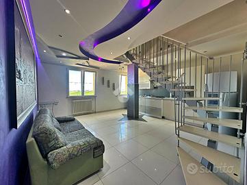 In una posizione tranquilla e suggestiva, nel cuore dell'antico borgo di Santa Maria del Monte a Saludecio, si apre la porta di un appartamento unico, dove il fascino della tradizione collinare incontra l'eleganza del design contemporaneo. Disposta su due livelli e studiata per garantire massima riservatezza, questa dimora accoglie gli ospiti al primo piano con una cucina spaziosa e inondata di luce, luogo ideale per la convivialità. Salendo al secondo piano mansardato, l'atmosfera si fa ancora più intima e ricercata. Qui, il soggiorno avvolge con il suo fascino caldo e raccolto, impreziosito da finiture di design che dialogano armoniosamente con l'architettura degli spazi. La zona notte è un esempio di funzionalità ed estetica: la camera matrimoniale è un'oasi di comfort, affiancata da una camera doppia e da una terza camera arricchita da una pratica cabina armadio. Un cenno particolare meritano i bagni, veri gioielli di stile, dove la scelta di materiali di pregio e dettagli finemente rifiniti trasforma ogni momento dedicato alla cura di sé in un'esperienza di puro benessere. Il valore di questa proposta è esaltato dal fatto che l'intero arredo presente, è già incluso nel prezzo di vendita, rendendo la casa pronta per essere vissuta fin dal primo istante. All'esterno, il terrazzo regala un panorama mozzafiato: uno sguardo che abbraccia le dolci colline circostanti fino a perdersi nell'azzurro del mare, offrendo uno scenario perfetto per colazioni silenziose o cene al tramonto. La proprietà è completata da una comoda cantina al piano interrato, ideale come spazio di deposito e da un vano sottotetto uso ripostiglio. Questa residenza è la scelta ideale per chi desidera una soluzione 'chiavi in mano', dove ogni dettaglio è stato curato con amore e gusto.