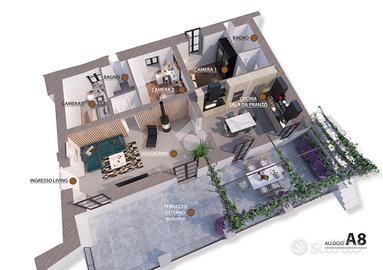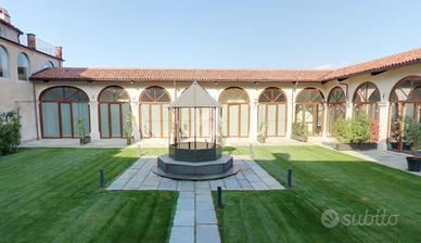 SALUZZO in Via San Bernardo, all'interno dell'ex convento Trinità, appartamento situato al piano terra in contesto storico. Si compone di cinque locali ben distribuiti, ideali per chi cerca spazi ampi e versatili. L'immobile al suo interno è formato da soggiorno, cucina abitabile, tre camere da letto e doppi servizi. Uno dei punti di forza è il terrazzo privato di 57 mq, perfetto per momenti di relax all'aperto o per ospitare amici e familiari. Possibilità di garage a parte. Cantina di pertinenza. Il riscaldamento è autonomo tramite impianto a pavimento a basso risparmio energetico.