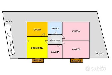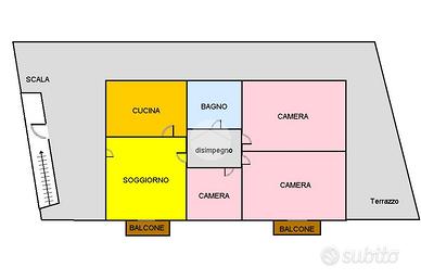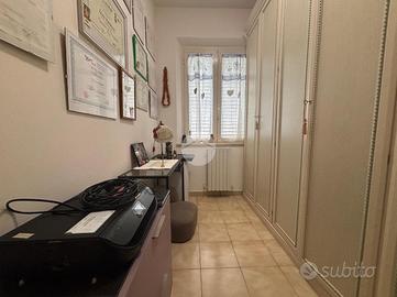L'appartamento è composto da cinque locali: due camere da letto, una zona giorno ampia e confortevole, una cucina abitabile e uno studio che, all'occorrenza, può essere facilmente trasformato in una terza camera.