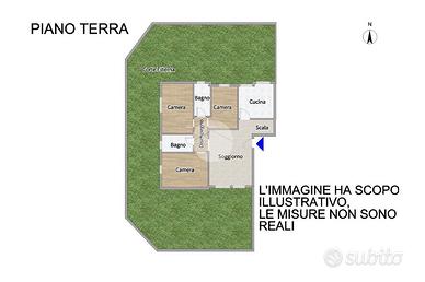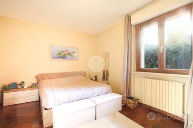 Una scala interna conduce al piano inferiore, dove troviamo una spaziosa taverna con cucina attrezzata e salottino, oltre a bagno con doccia e accesso diretto al box auto di 37 mq.