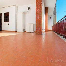 San Giovanni La Punta, nella centrale via della Regione, zona ricca di attività e servizi, pressi svincoli autostradali. L'immobile si trova al primo piano di una piccola palazzina di sole due unità dove non vi sono spese condominiali, risultando così semi indipendente. Di ampia metratura, circa 160 mq interni, si presenta in buone condizioni e pronto da abitare. E' dotato di una grande terrazza alla quale si accede da quattro camere con porte finestra munite di cancelletti in ferro ed un'ampia balconata con vista Etna. Di recente ristrutturazione, l'appartamento dispone di impianti rifatti totalmente con certificazione a norma e riscaldamento autonomo con caldaia (devono solamente essere installate le piastre già presenti). Rifinito elegatemente con faretti a risparmio energetico, doppi servizi e pavimenti in grés effetto parquet, si presta ai diversi stili di arredamento e soprattutto, avendo un doppio ingresso dal corpo scala, offre la possibilità di dividerlo in due diverse abitazioni. Potrebbe pertanto essere adibito a casa più studio, oppure si potrebbe locare in parte o accogliere famiglie con l'esigenza di avere spazi indipententi. Questa possibilità, difficile da riscontrare, rende l'immobile di sicuro interesse anche per investimento. Inoltre possiede regolare documentazione e quindi di facile e sicuro accesso al mutuo.