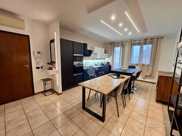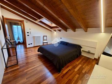 ---- VENDUTO ---- RINGRAZIAMO I NOSTRI CLIENTI PER LA FIDUCIA ACCORDATACI ---- SIAMO ALLA RICERCA DI NUOVI IMMOBILI PER SODDISFARE LE NUMEROSE RICHIESTE DEI NOSTRI CLIENTI. SE SIETE INTENZIONATI A VENDERE IL VOSTRO IMMOBILE CONTATTATECI ALLO O VENITE A TROVARCI PRESSO IL NOSTRO UFFICIO IN VIA MADONNINA 35 A SAN GIOVANNI LUPATOTO ----San Giovanni Lupatoto - In zona Vendramini, proponiamo in vendita appartamento di recente costruzione inserito in piccolo contesto condominiale posto al piano primo ed ultimo su due livelli,composto da ampia zona giorno e cucina open-space servite da un comodo terrazzo abitabile, bagno finestrato con doccia e camera serviti entrambi da balcone. Tramite scala interna possiamo accedere al piano superiore dove troviamo, disimpegno con balcone, due locali di ampie dimensioni adibito ad uso camere matrimoniali completamente travate a vista e bagno con vasca e doccia. Completano la proprietà al piano interrato cantina e garage. La soluzione edificata nel 2009 si presenta in perfetto stato, si segnalano la presenza del riscaldamento a pavimento, cappotto esterno, serramenti in legno con vetrocamera, parquet in perfette condizioni nelle camera da letto. Soluzione versatile, ideale sia per chi necessita delle tre camere da letto sia per chi predilige una zona giorno più ampia e separata. Nel prezzo sono ivi compresi il condizionamento, l'impianto d'allarme e l'armadio a muro fatto su misura di una delle camere.