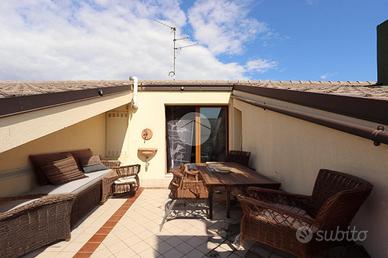 Al piano superiore si sviluppa la mansarda, dotata di un soggiorno con angolo cottura, due camere da letto, un bagno e un terrazzino ideale per momenti di relax all'aperto o una colazione al sole.