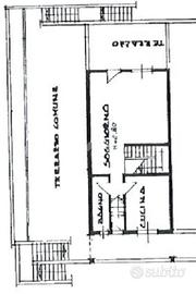 Al primo piano l'abitazione si apre su un accogliente soggiorno, una cucina abitabile, bagno finestrato e uno splendido terrazzo di oltre 25 mq, ideale per pranzi all'aperto e momenti di relax.