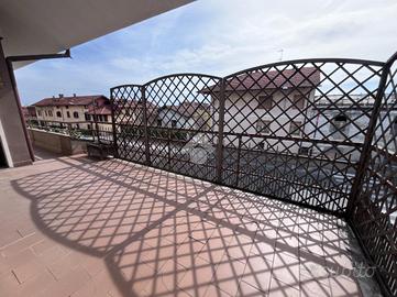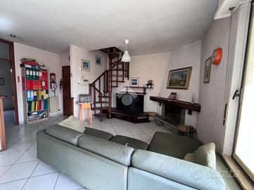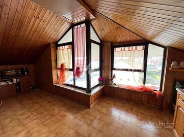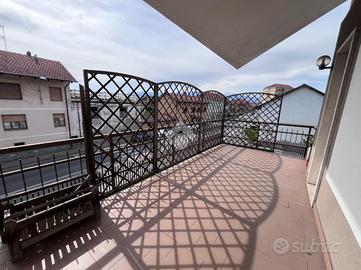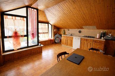 CENTRO SAN MAURIZIO C.SE. In prossimità della via principale, comodo a bar, ristorante, Farmacia, negozi, linea ferroviaria TORINO PORTA SUSA/ CIRIE', appartamento in casa bifamiliare situato al primo piano con mansarda abitabile. La costruzione risale al 1987 e l'appartamento si trova in buone condizioni interne. L'ingresso, tramite portoncino, è sul soggiorno con camino a legna e sala pranzo che affacciano sul terrazzo ampio e luminoso. La cucina è abitabile e sempre al piano troviamo un bagno con vasca, un bagno adibito a lavanderia e due camere da letto , entrambe di generose dimensioni e rifinite con parquet in legno. Tramite scala interna a chiocciola in legno, si accede al piano mansardato abitabile composto da un ampio vano open space con bagno e riscaldato anche da una stufa a pellet con canna fumaria in acciaio inox. La mansarda può essere volendo anche divisa per creare due stanze. E' presente l'antifurto e un posto auto scoperto. La caldaia è autonoma a metano e tutti i serramenti sono in alluminio con camera doppia e inferriate. Completano la proprietà un'area esterna piccola di giardino privato e un box auto di 30 mq piastrellato. Ottima soluzione per tutte le famiglie che cercano un appartamento comodo a tutti i servizi che il paese offre, in contesto tranquillo, senza spese di condominio e con una generosa metratura interna.