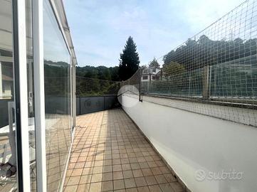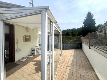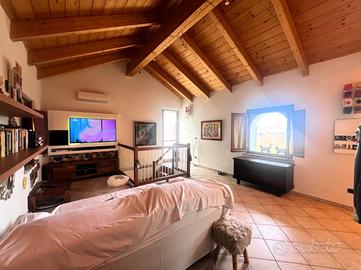 Situato in zona Sambuy a San Mauro Torinese proponiamo in vendita ampio attico mansardato con travi in legno a vista del 2007, situato al secondo ed ultimo piano (terzo fuori terra) di una palazzina di sole sette famiglie. Tramite l'ascensore dotato di chiave si accede all'ultimo pianerottolo di pertinenza esclusiva dal quale si raggiunge direttamente l'ingresso all'appartamento tramite porta blindata. Una comoda scala modulare in legno conduce poi alla luminosa sala con accesso tramite porta finestrata all'ampio terrazzo provvisto di veranda, che permette di poterne godere non solo nelle giornate estive ma anche in quelle più fresche o di pioggia. Tramite una parete scorrevole in vetro, che permette di mantenere la continuità degli spazi, si accede alla cucina abitabile di generosa metratura. Attraverso un lungo disimpegno è possibile raggiungere un primo bagno finestrato con doccia, le tre camere da letto e infine una sala da bagno completa di vasca e ampia vetrata ad illuminare l'ambiente. Entrambi i servizi sono completi di termoarredo oltre al riscaldamento a pavimento presente in tutto l'alloggio autonomo a metano. Possibilità di acquistare un box auto doppio di circa 33 mq con tre finestre, complete di inferriate di sicurezza e con apertura vasistas, che permettono di recuperare la luce naturale della rampa di ingresso ai box e di sfruttarlo volendo anche come zona di lavoro/hobbistica e di non usufruire per forza dell'illuminazione elettrica. Soluzione ideale per chi ricerca un piccolo contesto, in posizione riservata in un civico interno di Via XXV Aprile, comodo a tutti i mezzi e ai servizi.
