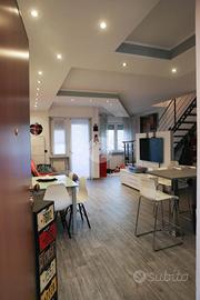 In zona Sambuy, più precisamente in via Mezzaluna , proponiamo 5 locali disposto su due livelli in una palazzina degli anni 80''. La soluzione si presenta con ingresso tramite portoncino blindato con cilindro antibulgaro europeo direttamente sulla cucina a vista . Il soggiorno risulta molto luminoso grazie alla porta finestra che conduce al primo balcone con affaccio sul giardino condominiale. La soluzione è stata ristrutturata completamente a cavallo tra il 2016-2017, con rifacimento degli impianti elettrico-idraulico. La pavimentazione è un greis porcellanato effetto legno color grigio in modo da adattarsi ad ogni genere di mobilio. Il primo bagno al piano è finestrato con sanitari sospesi e provvisto di box doccia. Tramite la scala moderna in acciaio e pietra di luserna accediamo al piano superiore dove troviamo due camerette di generosa metratura e la camera matrimoniale ampia con il suo balconcino. Il bagno al piano superiore è finestrato con vasca in muratura. Il riscaldamento è autonomo e gli infissi sono in pvc doppio vetro con zanzariera per minimizzare i consumi. Completano la soluzione un box auto con una comoda cantina annessa ed un posto auto nell'interno cortile. Ottimo per chi cerca ampiezza e comodità ma sopratutto vicinanza ai i principali servizi quali: capolinea del 61 e 8 che portano rispettivamente a porta nuova e porta susa, tabaccaio, farmacia, supermercati e a pochi passi dallo svincolo autostradale.