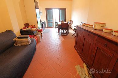 Entrando da portone si ha la zona giorno composta da luminoso soggiorno con angolo cottura.