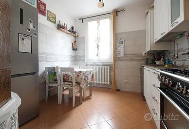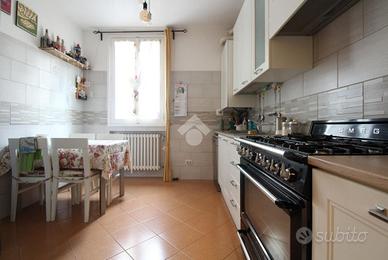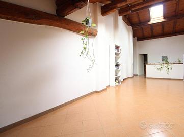 L'immobile è un appartamento che occupa gli ultimi due piani di una palazzina ubicata a San Pietro in Casale, nel cuore del paese. L'ingresso dell'abitazione, dalla pianta regolare e non angusto, permette di ospitare comodi armadi contenitori. La zona giorno è suddivisa in due ambienti: la cucina abitabile ed un ampio soggiorno con caratteristico affaccio sulla piazza del paese. Il piano si completa di camera, dalle dimensioni matrimoniali, e bagno servito da terrazzo. Il secondo ed ultimo livello, con travi in legno a vista, ospita la zona notte con altre due camere da letto e un ampio ambiente pluriuso. Sono presenti il secondo bagno ed un ripostiglio. La proprietà si completa, al piano terra, di cantina.