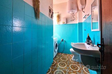 I bagni sono due: il principale è completo, con doccia, il secondo, più raccolto, è un bagno di servizio con zona lavanderia integrata, una soluzione estremamente pratica per la gestione della quotidianità domestica.