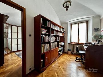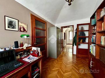 L'ingresso è nell'ampio disimpegno ed adiacente ad esso troviamo un locale adibito a studio ed una prima camera da letto utilizzata come cabina armadio.