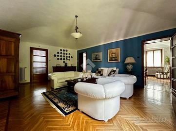 L'ampio e spazioso soggiorno divide le altre due vaste camere matrimoniali, di cui una ha l'accesso direttamente nel bagno finestrato con doccia. La cucina è abitabile ed ha l'affaccio sul terrazzo di circa 90 mq