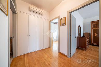Entrando si percepisce subito la cura con cui l'appartamento è stato mantenuto: un ingresso centrale introduce alla zona giorno, ampia e accogliente, distribuita lungo il lato sinistro dell'abitazione.
