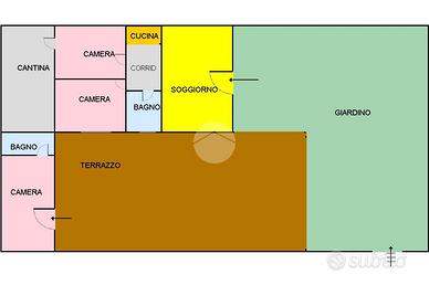 La zona giorno è composta da un ampio soggiorno con cucina a vista valorizzato dalle due finestre che donano luce ed aria a tutto l'ambiente e dal balcone che ha l'uscita diretta sul terrazzo di proprietà ove vi è la possibilità di poter pranzare e cenare fuori nelle calde giornate estive.