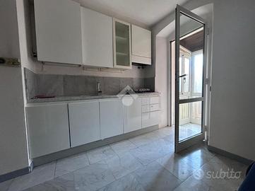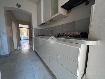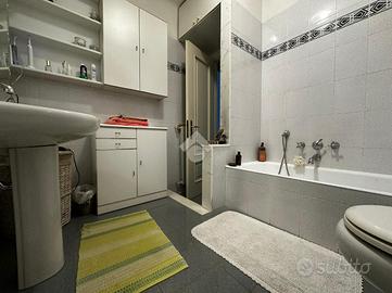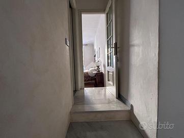 L'ingresso è sul soggiorno, dal quale si può accedere a tutti gli ambienti: allo studio, utilizzabile come terza camera, alla camera da letto doppia ed alla cucina abitabile con accesso al piccolo balcone; un piccolo disimpegno poi conduce al bagno dotato di vasca e alla camera da letto matrimoniale.