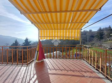 SAVIGNONE - Via Generale Francesco Strata Siamo nella parte alta di Savignone, a circa un km dal centro paese, dai negozi, dalle scuole e da tutti i servizi essenziali e dai mezzi pubblici. L'immobile è posto al primo piano di una piccola palazzina degli anni '70, con contenute spese di amministrazione annue ed avente accesso indipendente tramite portoncino Blindato. Disposto su due livelli abitativi complessivi, l'appartamento si presenta in perfetto stato di manutenzione in quanto oggetto di recente ristrutturazione. Al primo piano troviamo la zona giorno, composta da due grandi ambienti, separati tra loro da piccolo muretto e composta da uno spazioso soggiorno e da un'ampia cucina abitabile. ll soggiorno è provvisto di caratteristica stufa a legna mentre nella cucina è presente uno spazio sfruttabile come sala da pranzo. Dalla cucina si accede, tramite porta-finestra, al grande terrazzo vivibile di proprietà con affaccio nel verde sulla vallata sottostante ed esposizione a Sud. L' esposizione permette di fruire di un ottima luminosità in tutte le ore del giorno. Il terrazzo, ambiente ideale per momenti di relax in famiglia e/o in compagnia è eventualmente sfruttabile come area giochi per bambini e/o posizionamento di animali domestici ed è inoltre dotato di tenda para-sole avvolgibile. Allo stesso piano troviamo il bagno principale, anch'esso di ampia metratura e fornito di grande vasca idromassaggio e piccolo balcone accessibile da porta-finestra. Adiacente al bagno è presente un ulteriore locale dotato di finestra e sfruttabile sia come dispensa sia come zona lavanderia. Una caratteristica scala in pietra conduce al piano superiore ed alla zona notte dove sono presenti due camere da letto matrimoniali, una camera singola ed il secondo bagno dotato di finestra e box doccia. Anche a questo piano, da due delle camere da letto, si può accedere al secondo balcone con affaccio a Sud. Tutto l'impiantistica è stata ripristinata e l'impianto elettrico adesso è