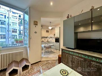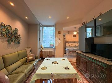 L'immobile è situato in via Bartolomeo Guidobono, una delle vie principali del centro ottocentesco di Savona. La posizione è strategica e comodissima a tutti i servizi, agli stabilimenti balneari e alla stazione ferroviaria. L'appartamento si trova al secondo piano di una palazzina in stile liberty, in ottime condizioni manutentive e servita da ascensore senza barriere architettoniche. Internamente, l'abitazione è composta da un ingresso su accogliente salotto. La cucina, pur essendo separata, rimane a vista grazie a un'ampia apertura che la collega direttamente al soggiorno, mantenendo così un ambiente conviviale. La cucina vanta, inoltre, l'accesso ad uno dei due balconi. La zona notte comprende tre camere da letto matrimoniali, tutte molto spaziose; una di queste dispone di un balcone con affaccio sulla via principale. Il bagno finestrato è dotato di antibagno e box doccia. La proprietà è completata da un comodo e pratico ripostiglio. L'appartamento si presenta in perfette condizioni interne, grazie a una recente ristrutturazione che lo rende abitabile da subito. I pavimenti alla veneziana donano eleganza agli ambienti, mentre l'illuminazione a faretti crea un'atmosfera moderna e raffinata. È presente inoltre impianto di condizionamento con uno split in ogni stanza. L'esposizione dell'immobile garantisce grande luminosità durante tutto l'arco della giornata. La generosa metratura consente, all'occorrenza, una diversa distribuzione degli spazi interni. Soluzione ideale per chi cerca una casa ristrutturata, luminosa, senza barriere architettoniche e nel pieno centro città.