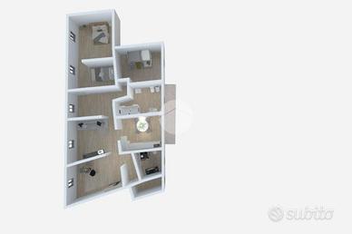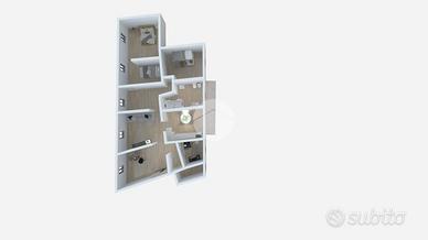 L'immobile è composto da ampio ingresso finestrato, soggiorno, cucina con uscita sul balcone, tre camere da letto, doppi servizi entrambi finestrati e ripostiglio.