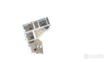 L'immobile è composto da ampio ingresso, doppio soggiorno, cucina abitabile, due camere da letto matrimoniali, studio e bagno finestrato.