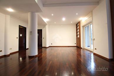 San Felice, Settima Strada - Appartamento di cinque locali, mq. 175 ca., sito al piano primo di una piccola palazzina di soli due piani, in posizione ottimale per raggiungere comodamente a piedi e in pochi minuti i negozi offerti dalla Piazza Centro Commerciale. L'immobile presenta ampi spazi interni e ben distribuiti, dall'ingresso si accede al soggiorno doppio con camino e uscita sul terrazzo di mq. 21 e alla cucina abitabile separata, con adiacenti una camera e il bagno-lavanderia. La zona notte è divisa in due parti, la prima ospita la suite matrimoniale, con annesso il proprio bagno finestrato con vasca; nella seconda sono collocati le altre due camere, il bagno cieco con doccia e il ripostiglio. Dotato di pavimenti in parquet e aria condizonata nella zona giorno, infissi in pvc con doppi vetri, caloriferi nuovi con termovalvole e ripartitori, porta blindata. Annessa cantina, disponibile Box Doppio.