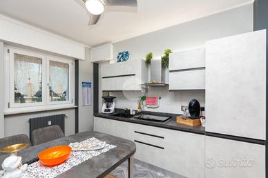 Nel cuore di Settimo Torinese, proponiamo in vendita un ampio appartamento di 130 mq, situato al primo piano di cinque di un edificio civile. L'immobile, originariamente costruito nel 1980, è stato recentemente ristrutturato, offrendo un ambiente moderno e funzionale. La disposizione interna comprende è composta da ingresso, ampia sala luminosa, cucina abitabile, due camere da letto, bagno con vasca e doccia, lavanderia e ripostiglio. Climatizzatori e antifurto. Presenza della cantina al piano interrato. Completa la proprietà il posto auto ad uso esclusivo.